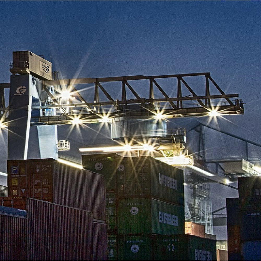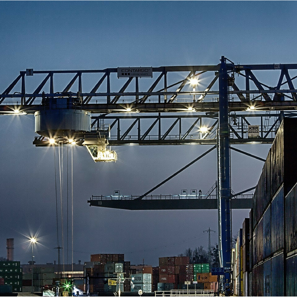 Die Herausforderung bestand darin, einen der größten Binnencontainerkräne Europas auszustatten, welcher mit Lichtpunkthöhen von bis zu 37m im Schiff aufwartete. Im Arbeitsbereich war ein mittleres Lichtniveau von 100-300lx gefordert. Besonders knifflig gestaltete sich die Aufgabe durch die in ihrer Anzahl begrenzten und bereits vorgegebenen Aufhängepunkte. Durch das patentierte optische Linsensystem der STAR Bright LED Strahler konnte jedoch das Licht dorthin gelenkt werden, wo es auch benötigt wird, ohne unnötig Licht durch Streuung zu verlieren.
